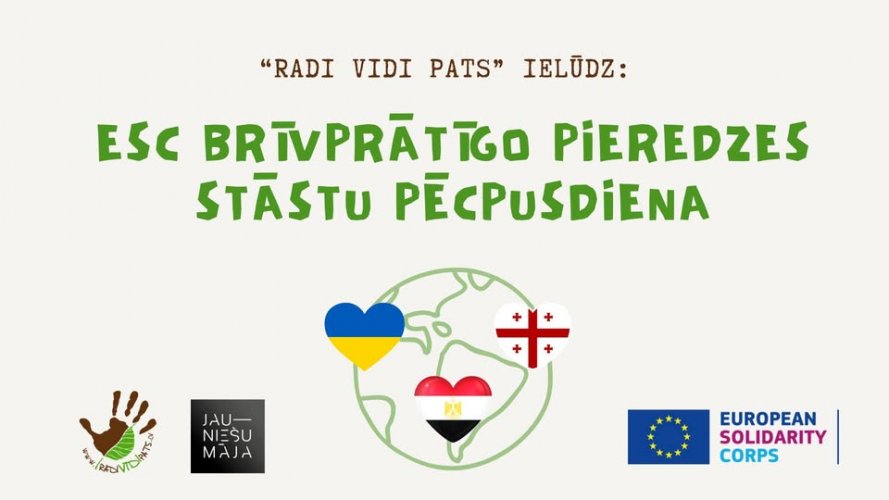 Nāc un ieklausies iedvesmojošos stāstos no tiem, kas jau devušies ESC ceļā, savā pieredzē dalīsies brīvprātīgie no Ukrainas, Ēģiptes un Gruzijas. Iegūsti vērtīgus padomus un sajūti, kāda varētu būt Tava nākotnes pieredze Eiropā!